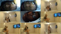 The captives’ faces are firmly encased within the lavatory, preventing them from relieving themselves for their owners. Consequently, following a bowel movement, they must personally cleanse themselves with paper towels.
